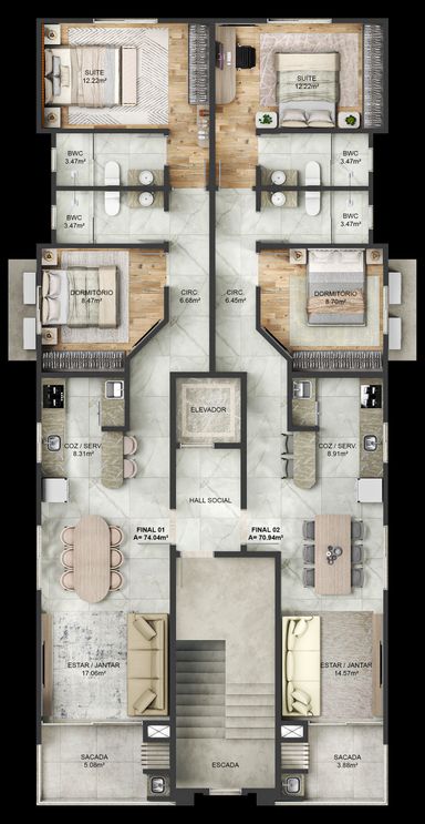 Apartamento com: