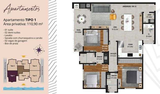 Apartamento à Venda com 3 quartos, 3 banheiros e 2 vagas por R$ 960.000 Centro, Navegantes-SC